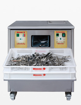 Приборите за хранене се мият първо на висока Т, после се киснат в белина или оцет, пак се мият и се полират в машина с пясък. Ей тази машина мен много ме дразни, излизат супер лъскави и чисти, ама пък този пясък не мога да го "преглътна" като чист. Та- хем тъй, хем не Simple Smile
