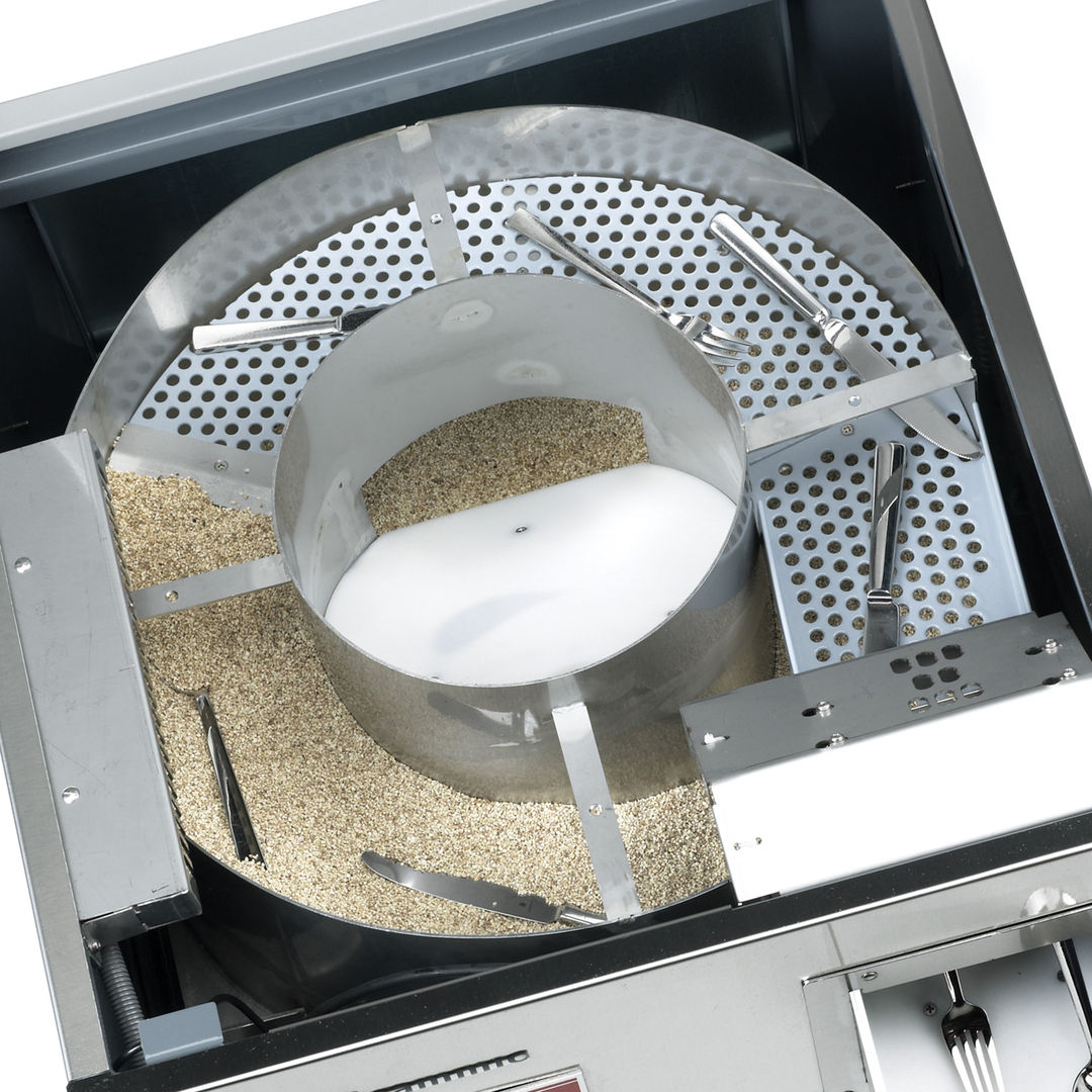 Да, но едва ли в ресторанта. По-скоро е някакъв въртящ се съд пълен с пясък или друго. В промишлеността се използват масово за полиране на детайли, но мисля, че не използват пясък.