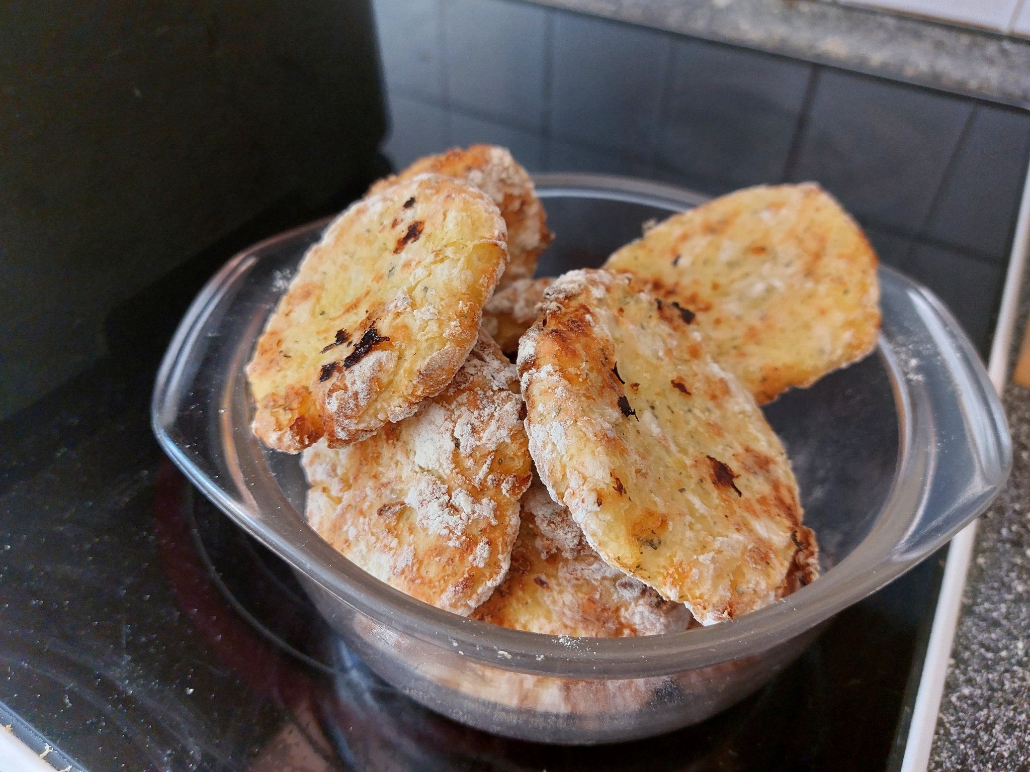 Идея от мен за злояди деца - картофени кюфтета със заготовка сьомга .Вътре с яйце,лук,магданоз, сирене и заготовката.
