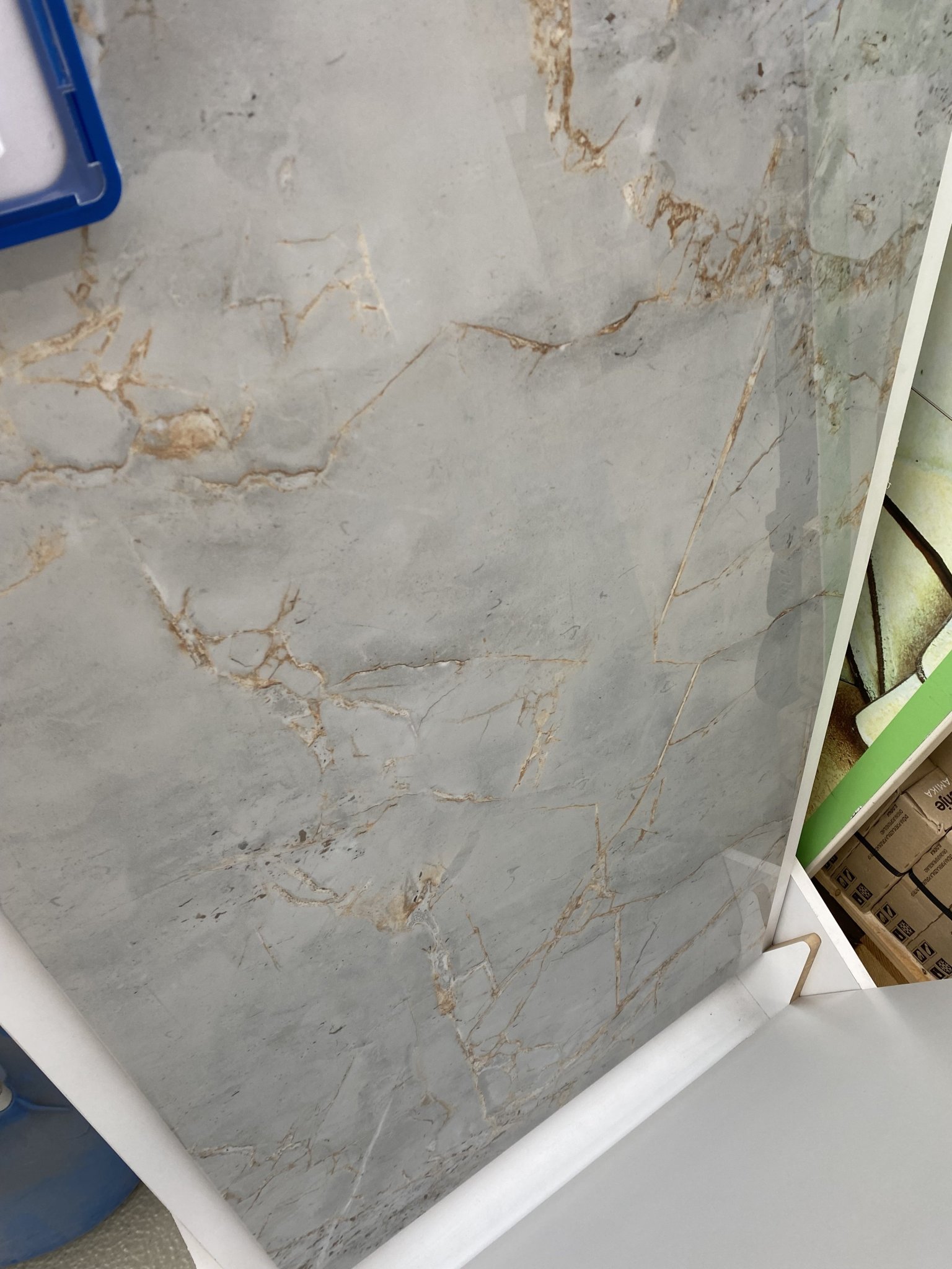 Плочките,които ще са в цялото помещение са сиви с някакви жълтеникави нишки (ще приложа снимки) и меката мебел е тъмно сива (отново ще приложа снимки).