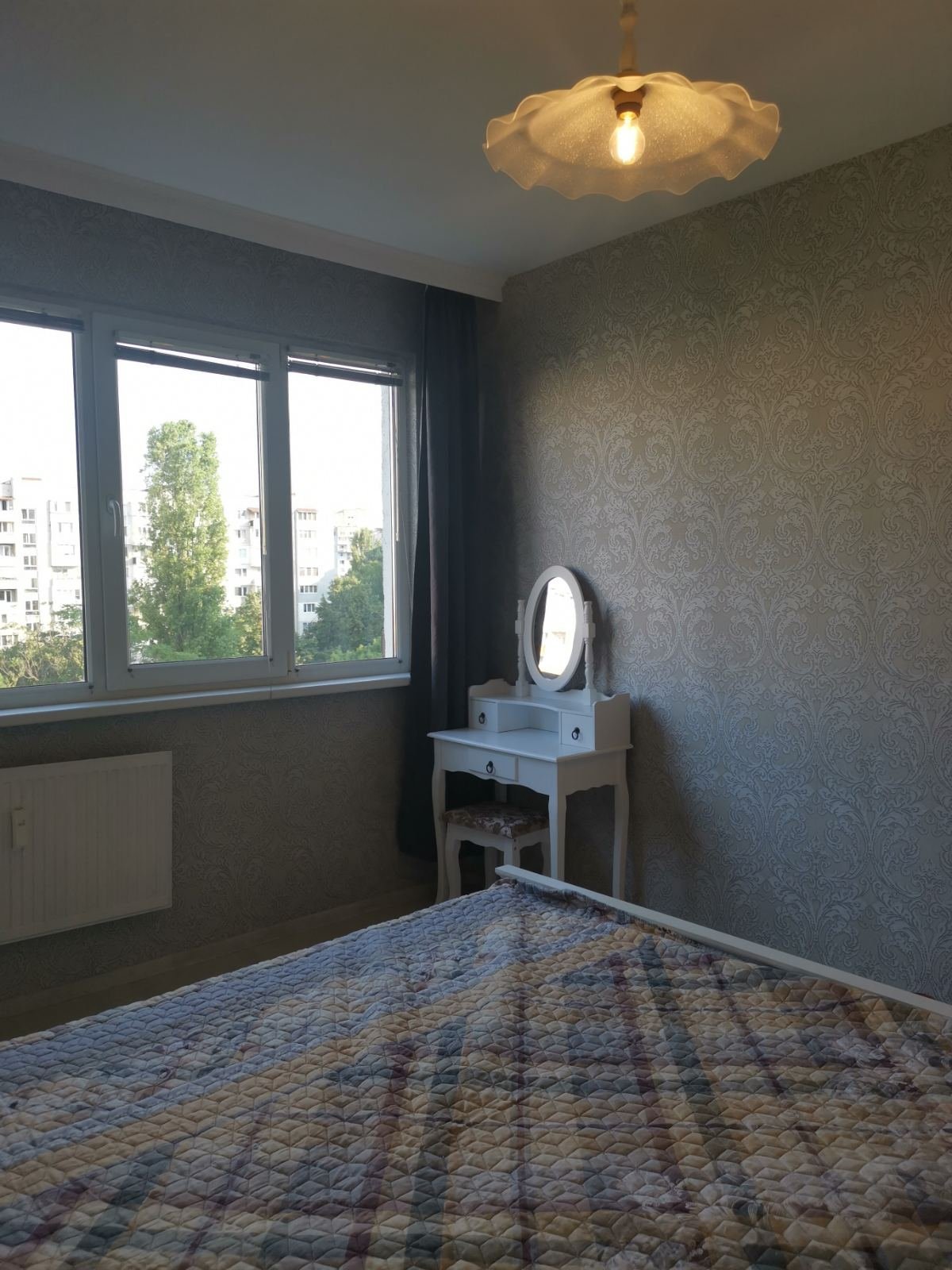 Апартамента, който ще отдаваме, е двустаен с кухня, 62 кв.м., ПВЦ дограма, към топлофикация, има един усвоен балкон към кухнята и един нормален балкон към хола, етаж 5 от 9, квартала е Разсадника, до инвитро центъра д-р Щерев.  След ремонт, мебелите по-голямата част са сменени и са от Виденов.