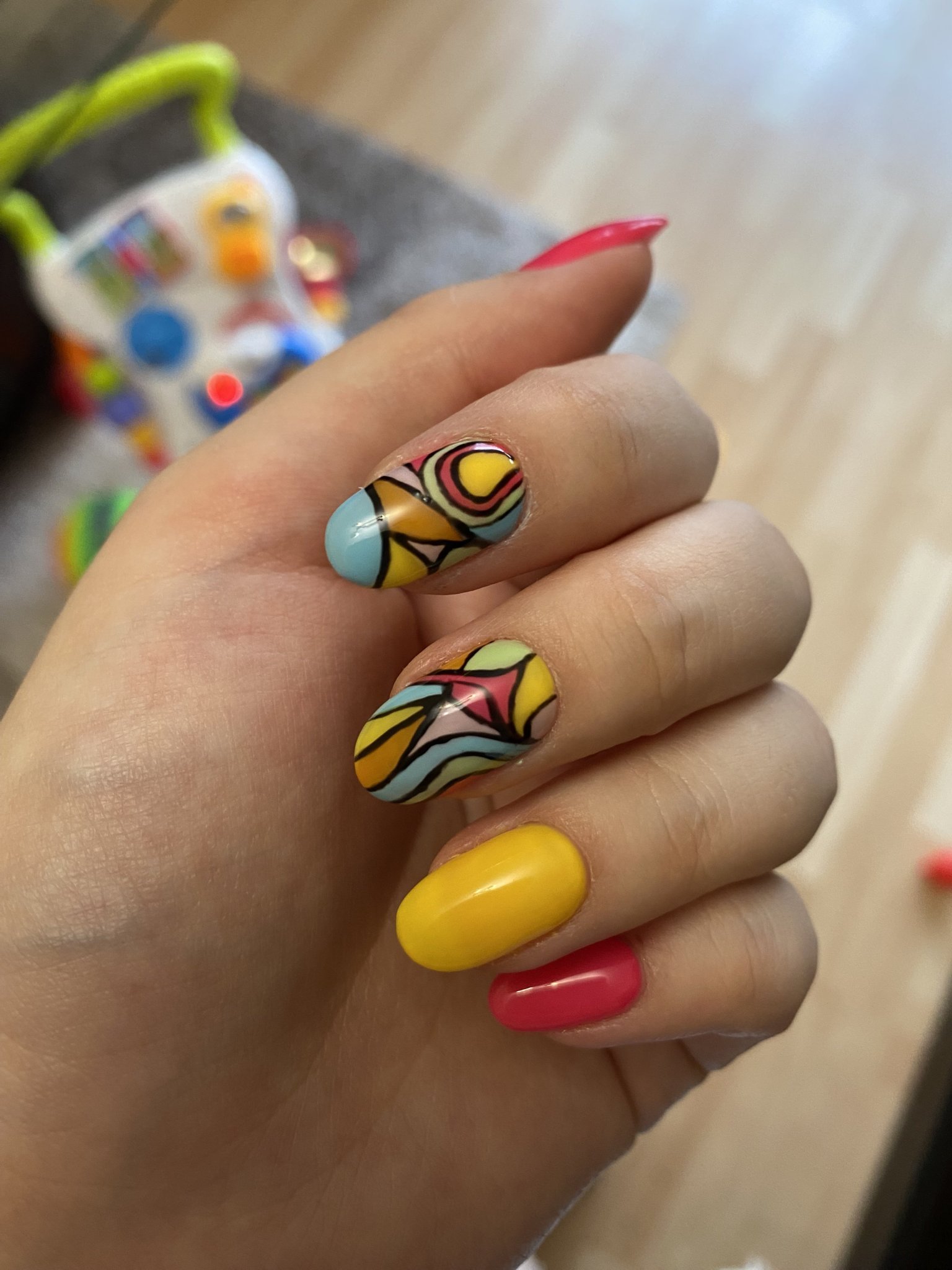 Розовото става на черти. Това е първият лак на sunone, който пробвам. Жълтото се отдръпва от свободния край, зеленото се обели. Днеска на една приятелка на ноктите се мъчих, мъчих....Изнервих се и аз и тя. Снощи ги пробвах на мостра и с зеленото и жълтото нямах проблем на мострата. Розовото още тогава го видях, че не става.