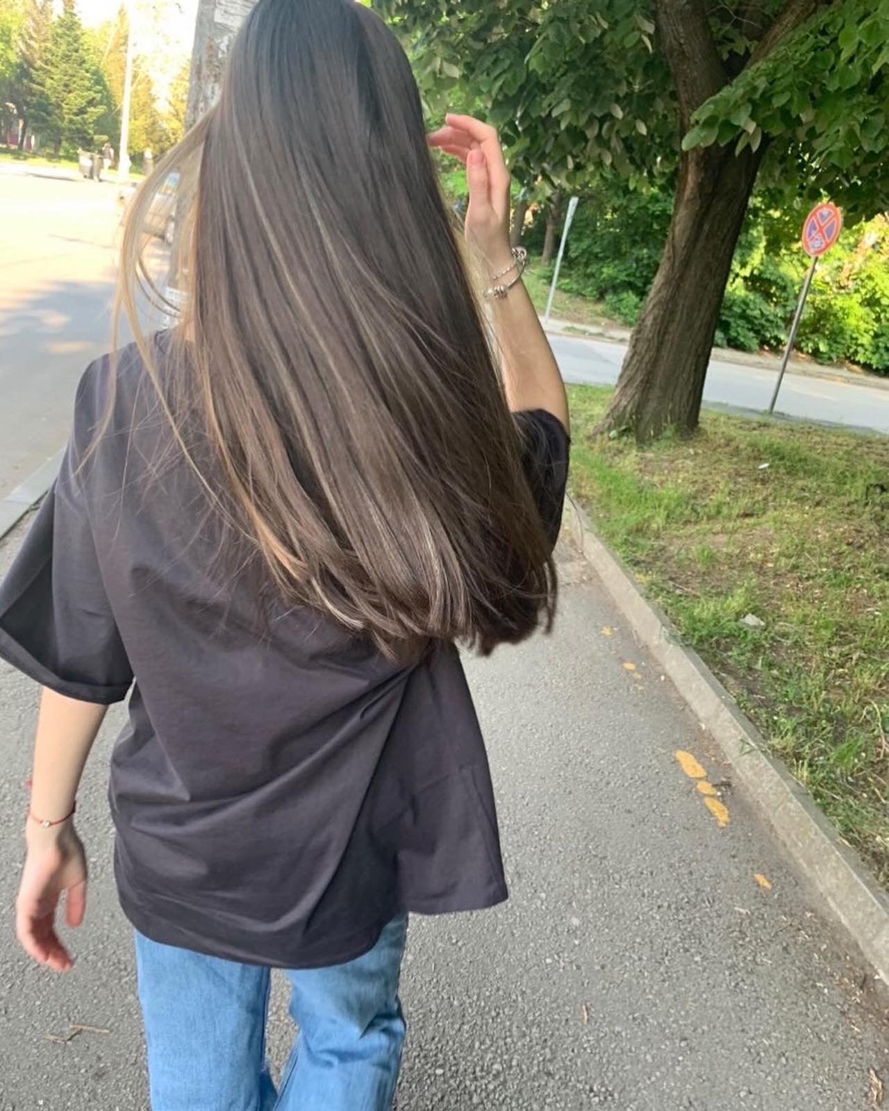 Косата си поддържа, като използва само продукти на олиосета, които и се отразяват страхотно на косата.