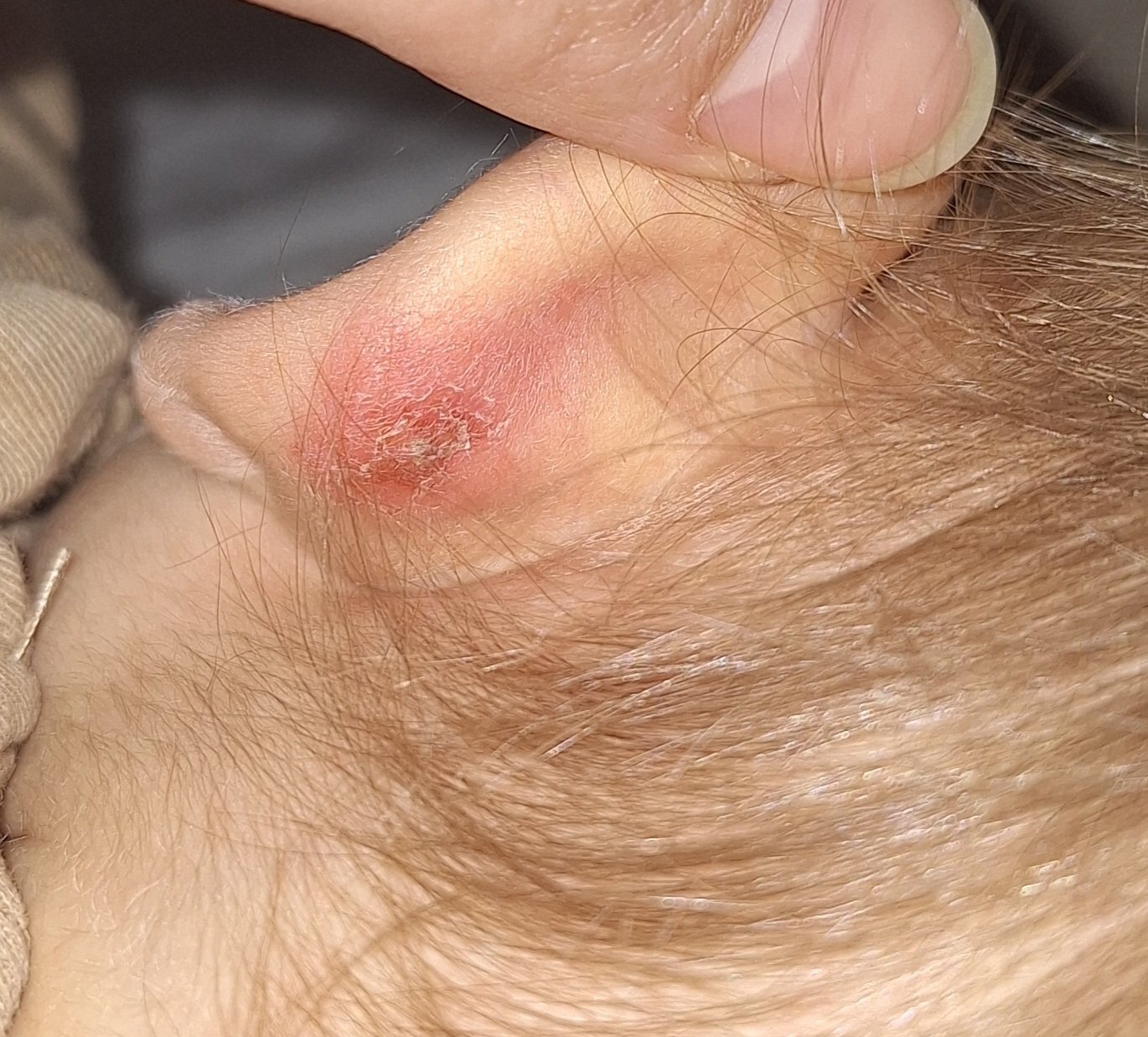 Здравейте! Преди няколко дена видяхме това на ушлето на детето ни (1г8м). Първо беше по-малко, но сякаш се разрастна.
