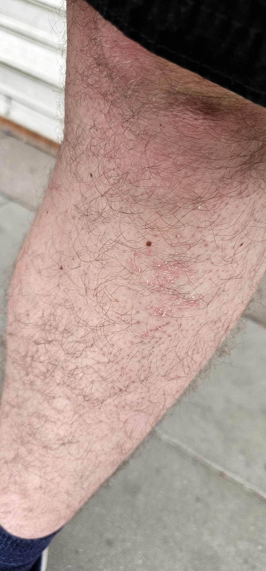 Проявява се по цялата кожа, но предимно на краката и гърба,раменете.