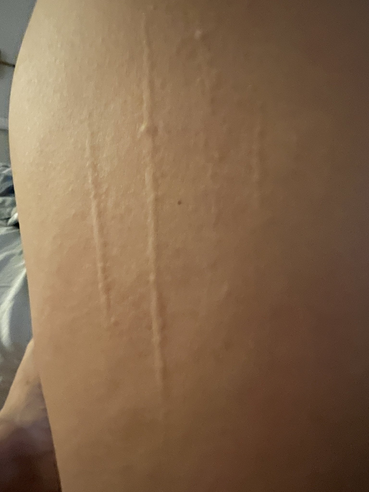 Това е по бедрата ми високо на хълбока от много време. С какво мога да мажа? Единични обриви такива има и на други сектори от бедрата.