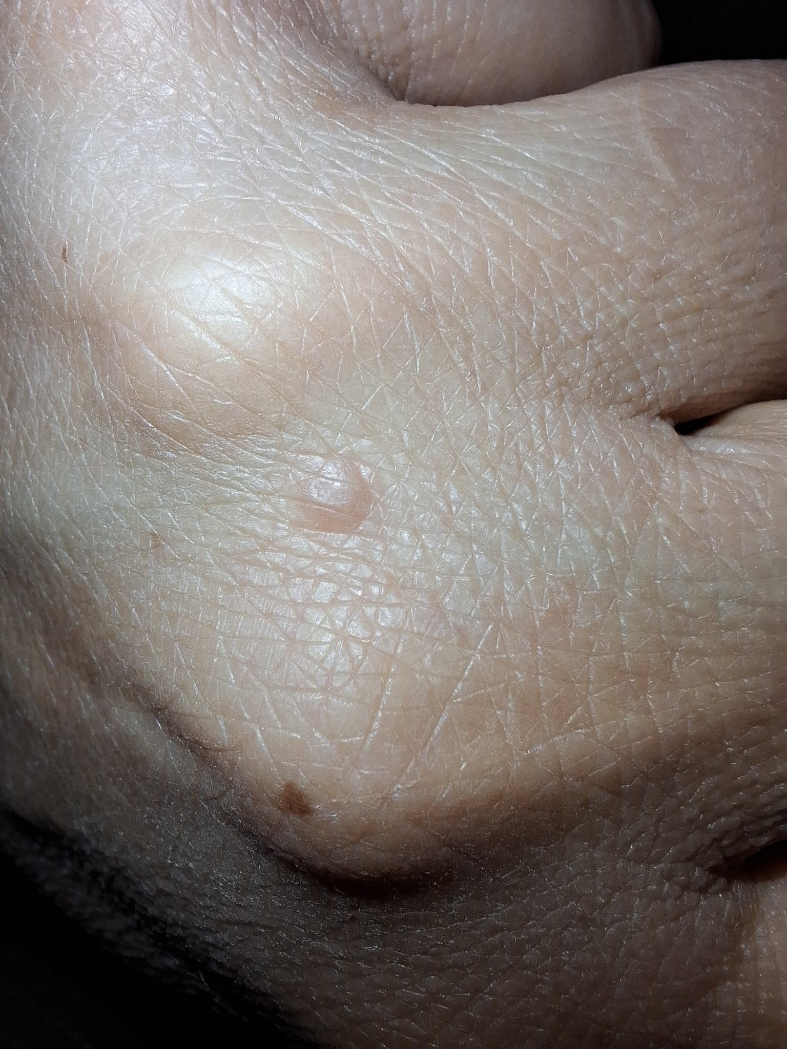 Здравейте, наскоро забелязах това на ръката , мисля че имаше нещо като пъпчица но сега малко е пораснало. Дали е някакъв вид папилом или брадавица?