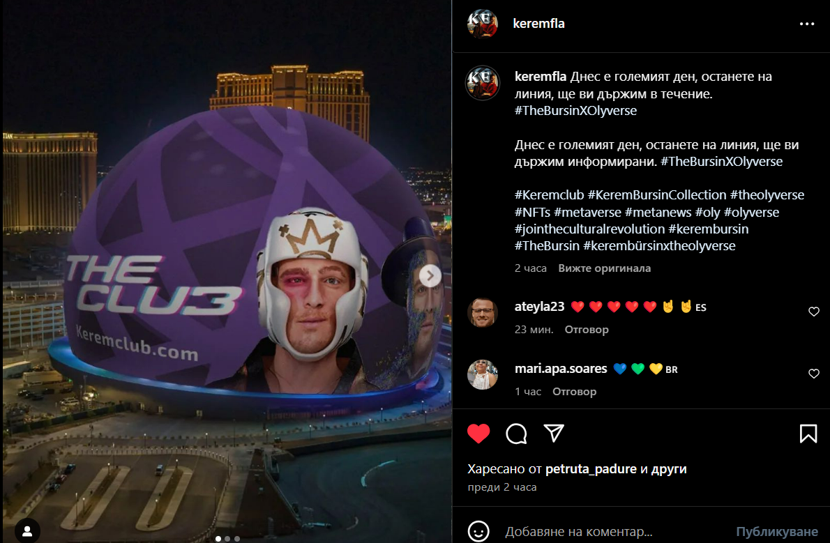 От вчера в инстаграм и живото преддаване на Керем  за Oliverse.