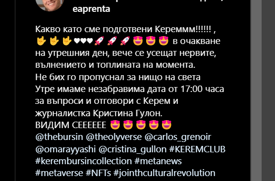 Придружаващият текст ни казва, че утре ще се съсстои поредният епизод