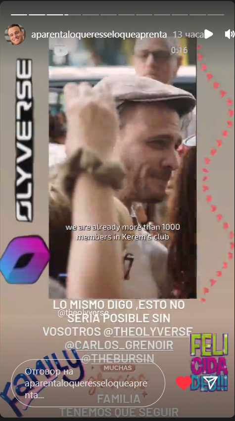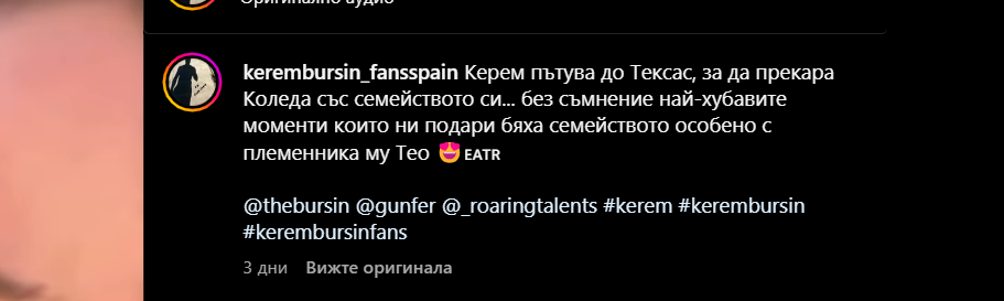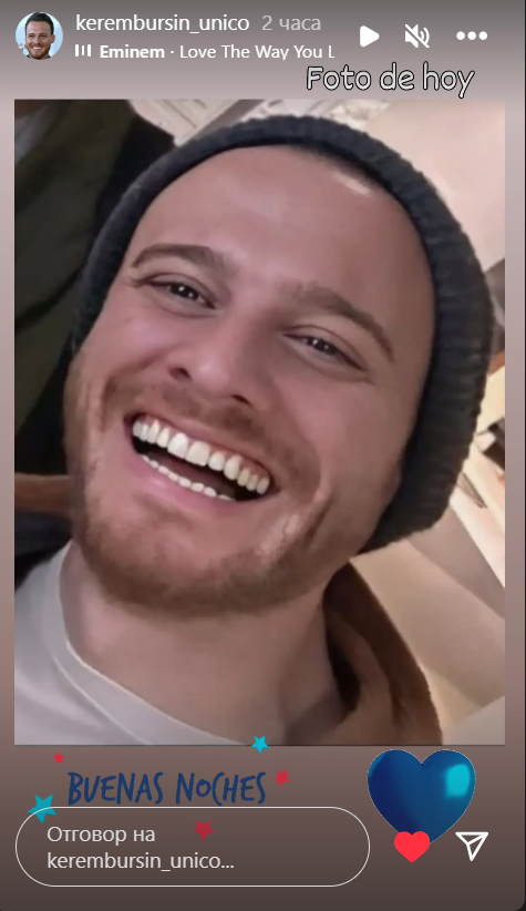 Аз имам няколкоо фенски снимки и клипче с Керем от днешния инстаграм и сторита.