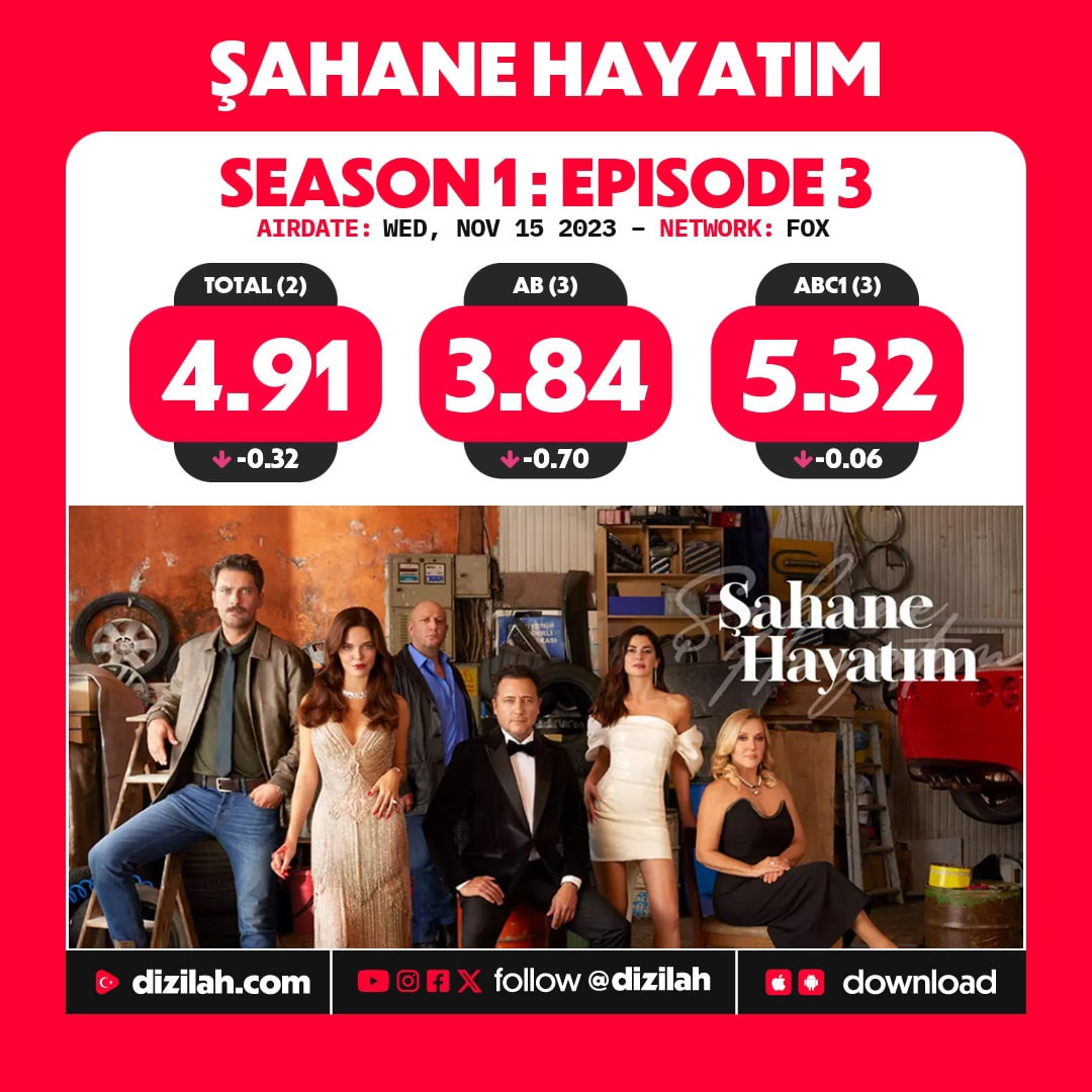 Изгледах с озвучката еп.3 на сериала - много ми хареса , не виждам защо рейтингът е паднал малко , но не и при най масовата група - представляваща най голямата част от турските зрители , слава Богу