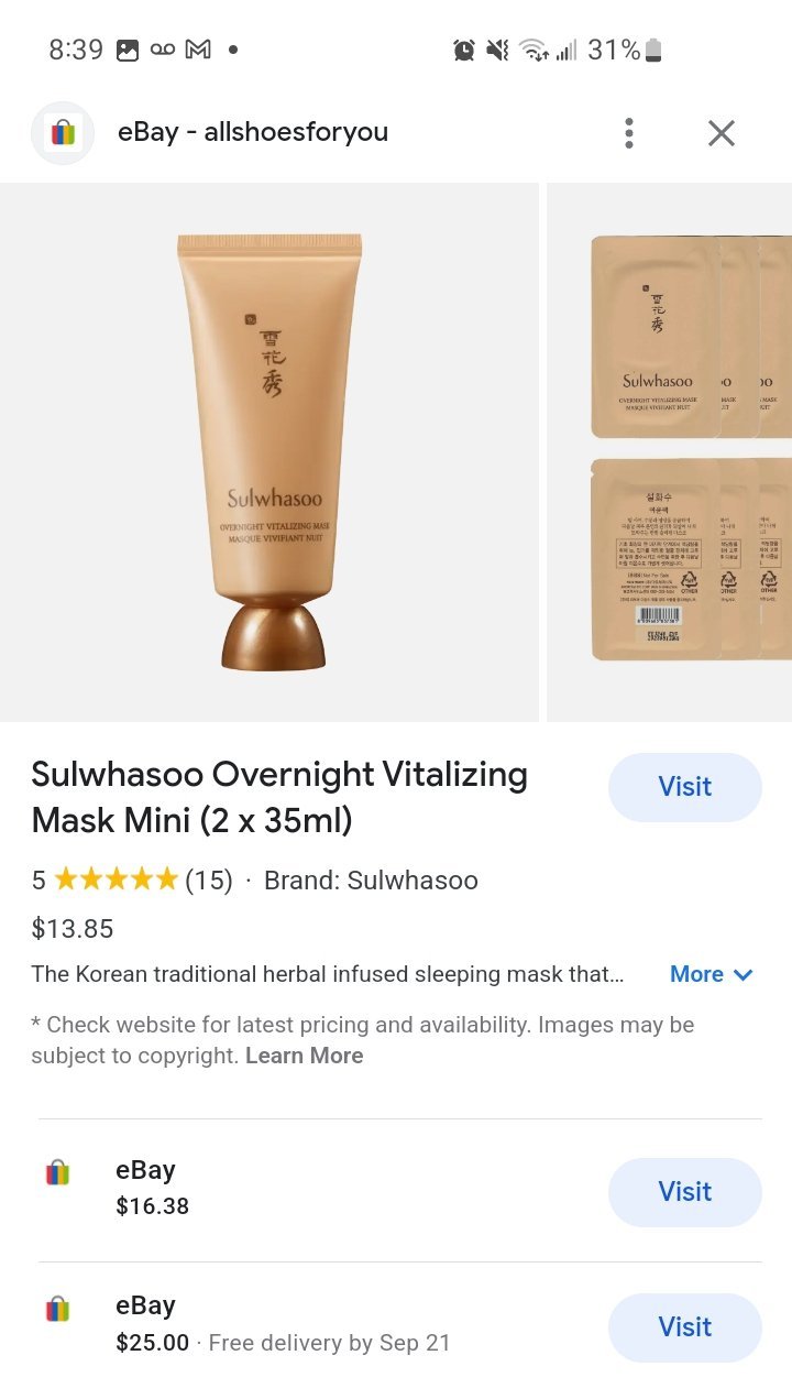 Тази съм я взимала на тестери, защото висях на тази антиейджинг серия, а е скъпа, пущината, но интересното е, че сутрин от нея видимият ефект е доста по-малък отколкото на другата Sulwhasoo (Vitalizing), koято е много по-евтина!