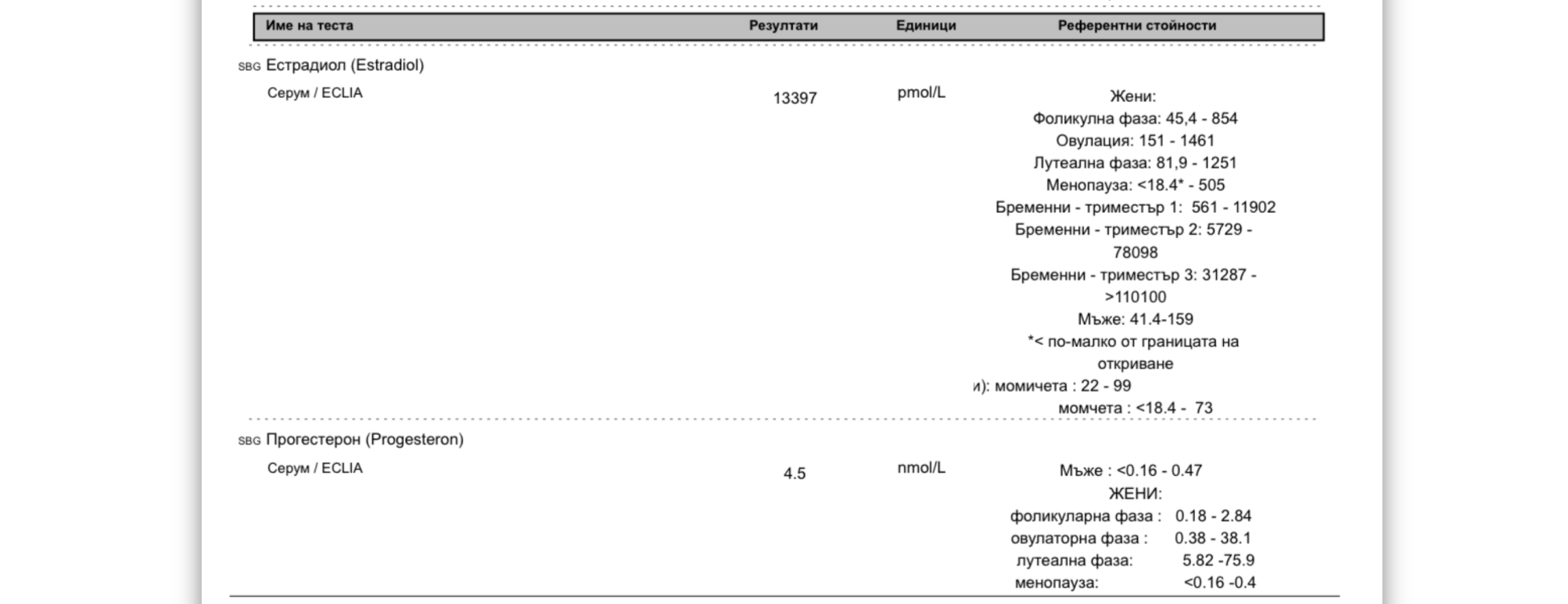 Днес ми пуснаха кръвни и хормони. Прави ми впечатление, че утайката е малко висока. Надявам се да не е проблем.