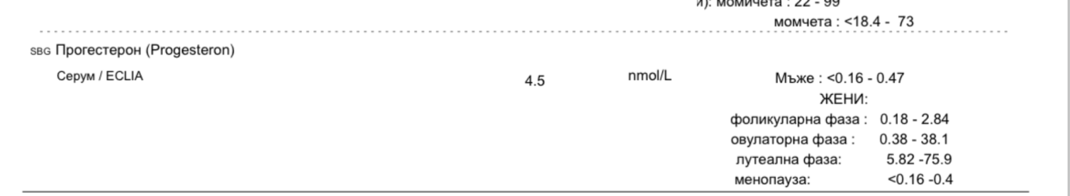 Пуснах хормони сутринта и съм притеснена, че прогестеронът е много висок - 4.83 nmol/l, което се равнява на 1.52 ng/ml.