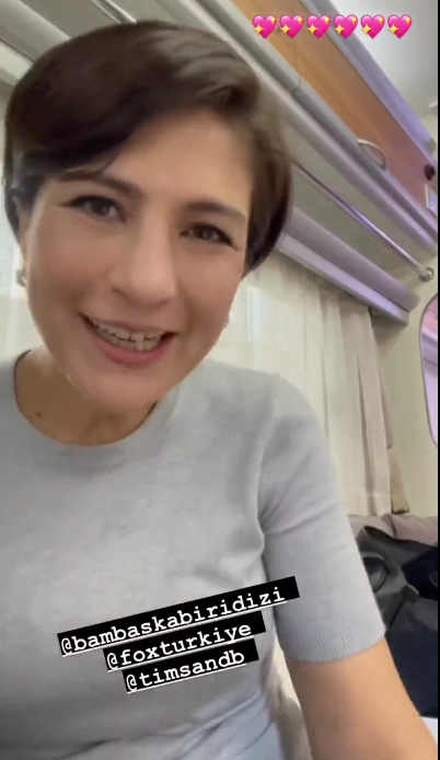 "Актрисата #GülçinHatıhan, която играе ролята на Şahinde Gediz на снимачната площадка на #BambaşkaBiri чрез историята на IG, „Напълно друг човек започва своето пътуване“