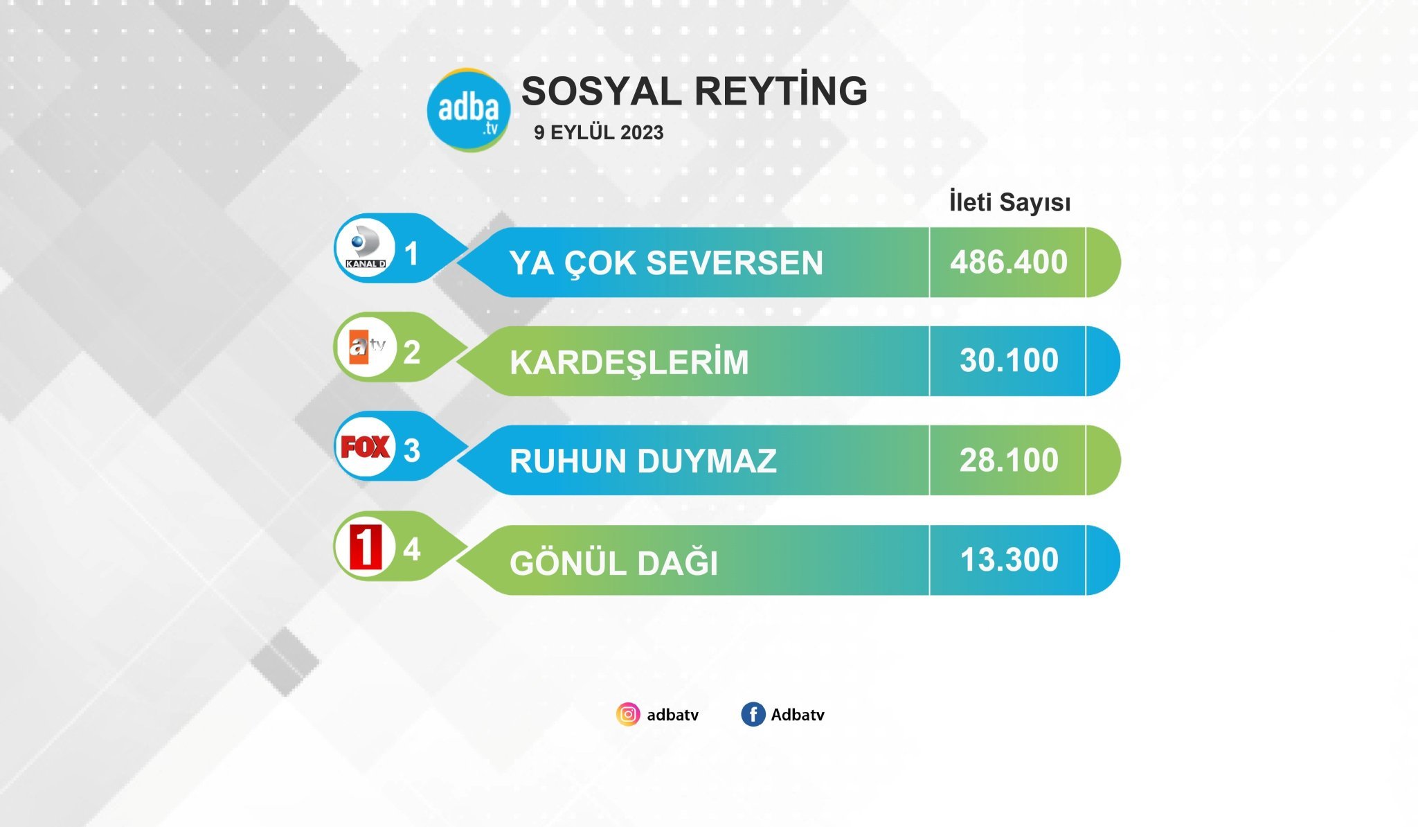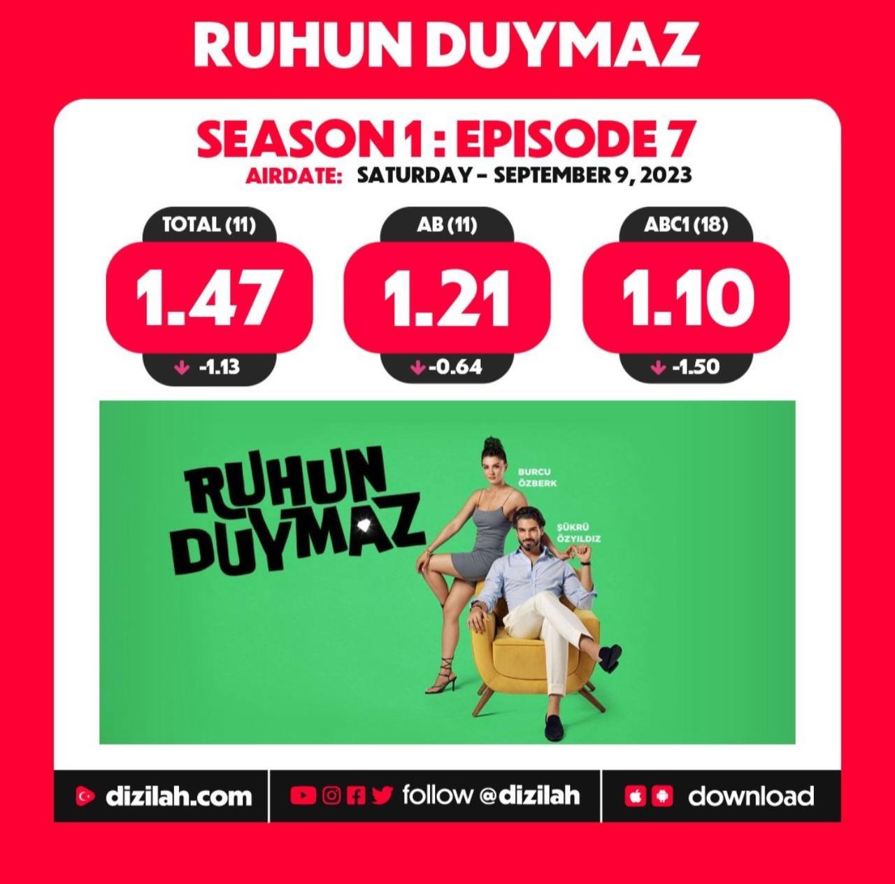 #YaÇokSeversen reyting sonuçları Total  1,58 (9)  AB 1,43 (9)  ABC 1,83 ( 8 )