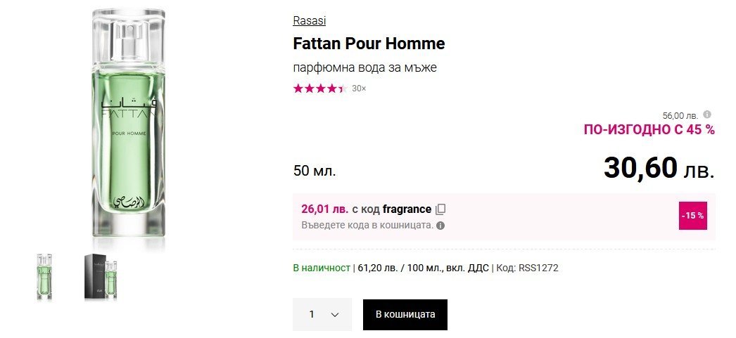 Здравейте, това добра цена ли е за 30 мл? С код fragrance, става 232,90 лв.