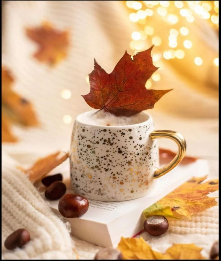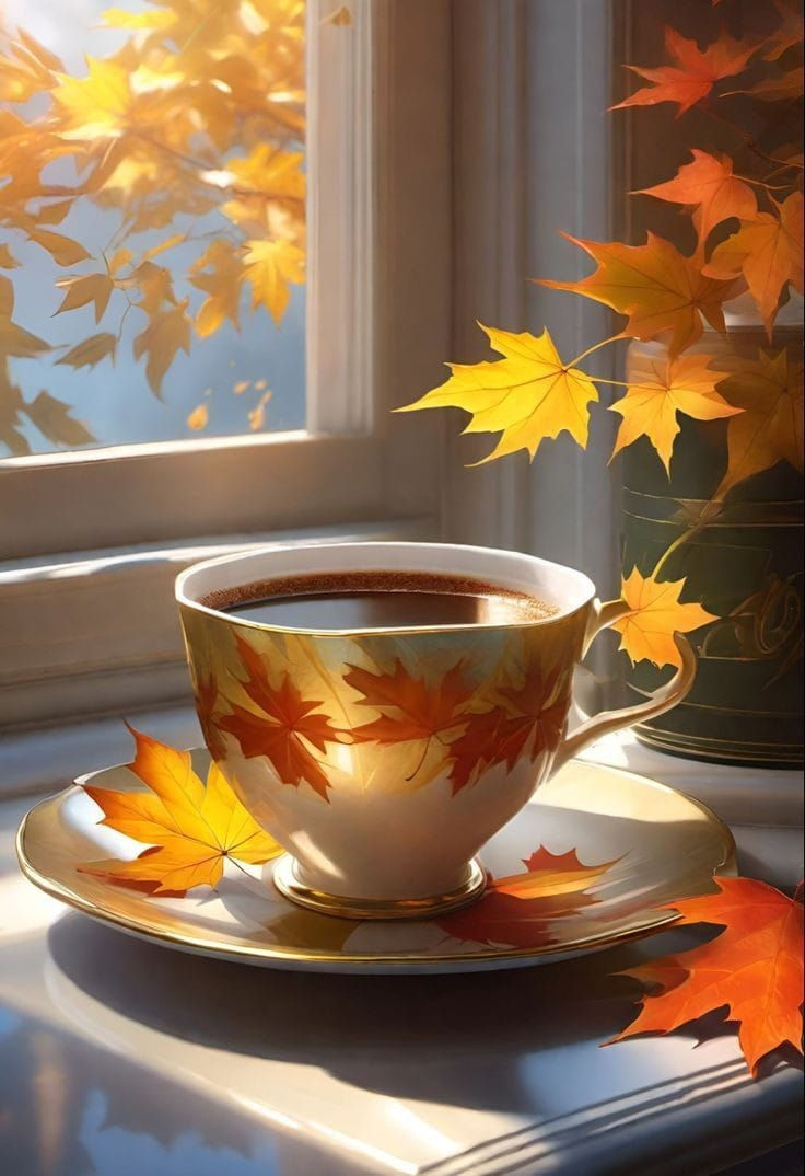 CoffeeYellow HeartFlowers Fallen Leaf