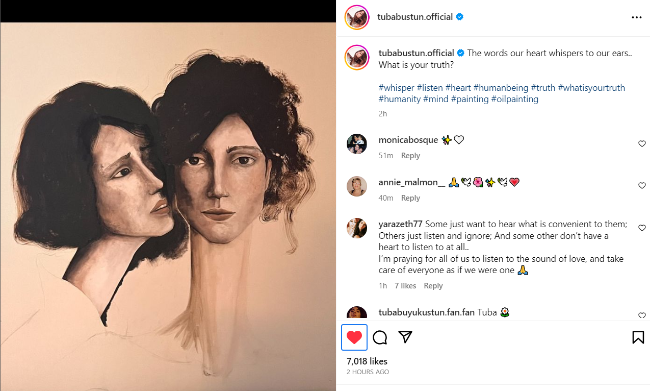 Видях, че последната седмица Туба е последвала в профила си в IG три профила за мебели и интериорен дизайн. А вчера е последвала Лекари без граница. Със сигурност не е безучастна към събитията в близкия изток.