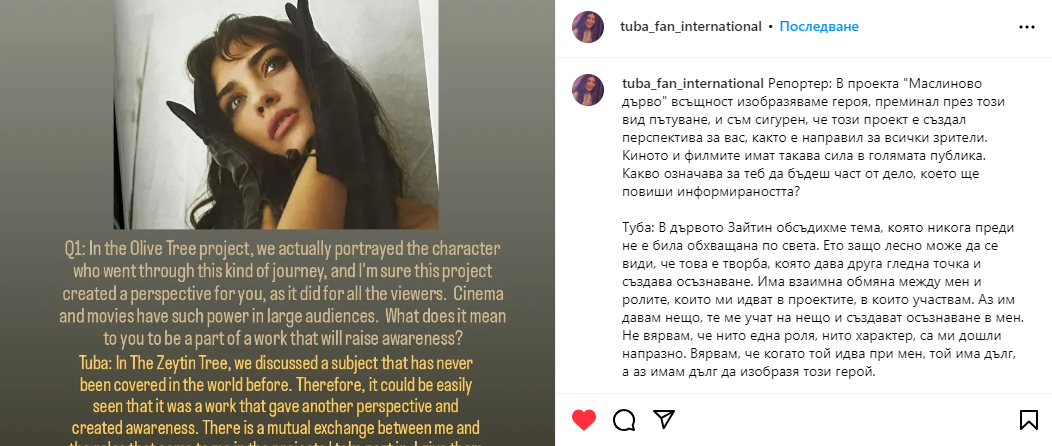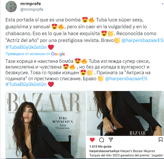 Туба днес се е отчела с репост на снимка от списанието с фотосесията.