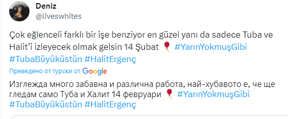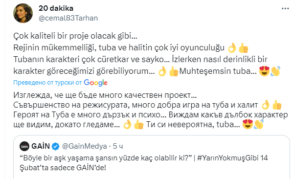В статията има един израз “Yarın Yokmuş Gibi” tüm bölümleriyle 14 Şubat’ta sadece GAİN’de…