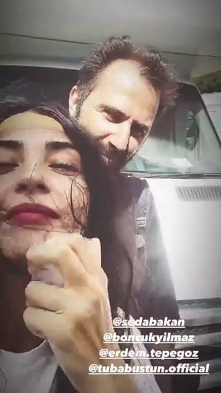 Днес приятелките на Туба Nil, Merve, Eylem & Nihan са посетили сета и са са публикували снимки, но без Туба! Затова пък до нейната... каравана... Blush