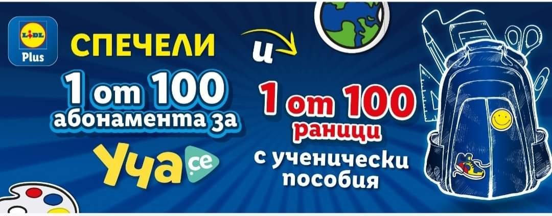 Пазарувай в LIDL за минимум 30лв. , сканирай Lidl Plus на касата , активирай участието си и участвай в томбола за - 1 от 100 абонамента за "Уча се" + 1 от 100 раници с ученически пособия 🤩