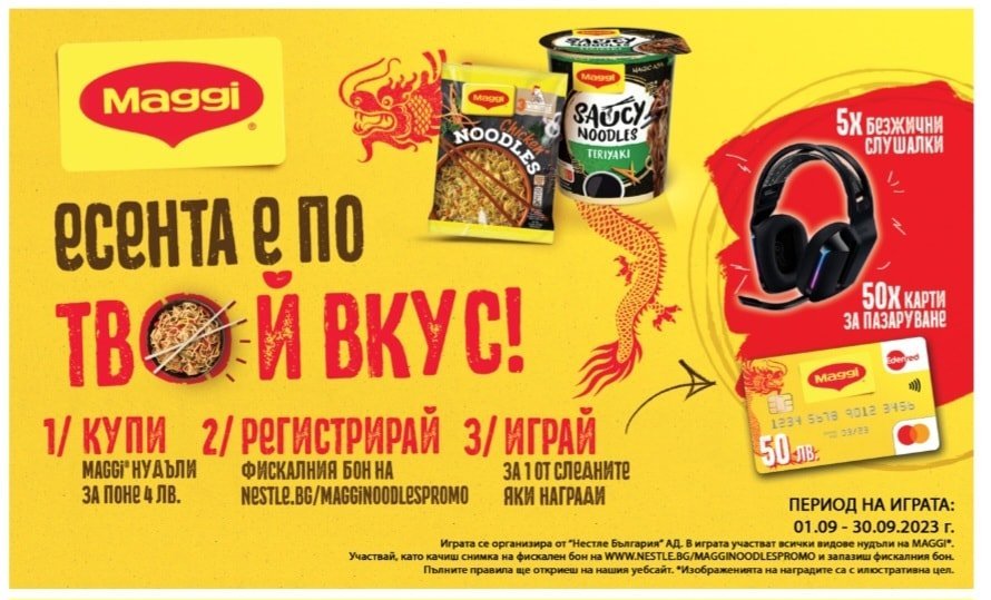 Купи Maggi Noodles за минимум 4лв. , регистрирай касовата бележка и участвай за: