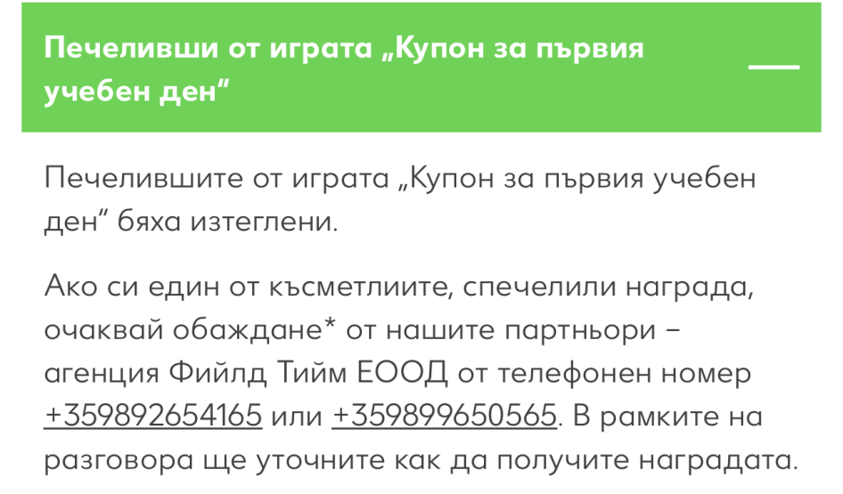 Да попитам звъннаха ли ви в 14-дневен срок, както е описано в правилата им? При мен - ни вест, ни чудо от тегленето на 11.09 до сега.