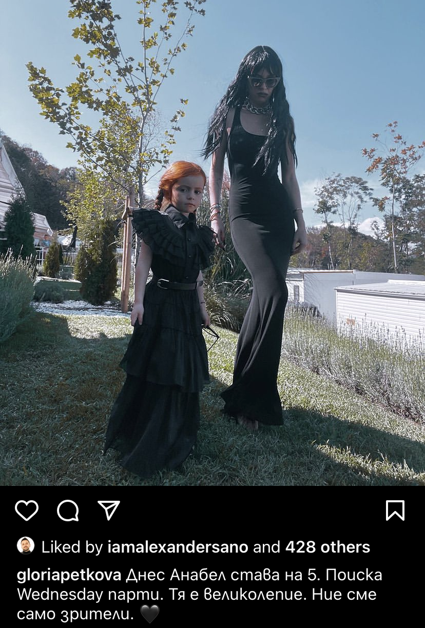 Надявам се 5 годишното на Глория Петкова да се е вдъхновила от анимационните филмчета за семейство Адамс, а не от нашумелия сериал за Wednesday. Ама предвид, че в детските не се обръща специално внимание на персонажа, едва ли.