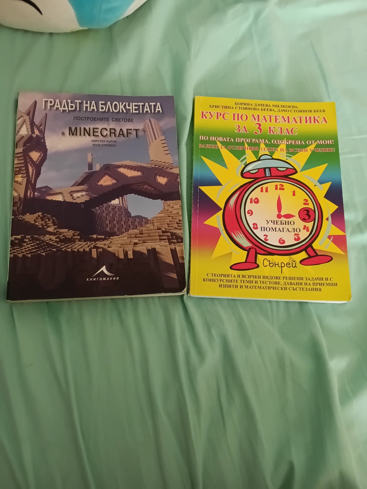 Здравейте темата не е много активна,но ще предложа едно помагало и една книга на сина ми. Помагалото е лееко в ъгълчето скъсано,но много малко. Подарявам ги,ако някои иска да ми пише.