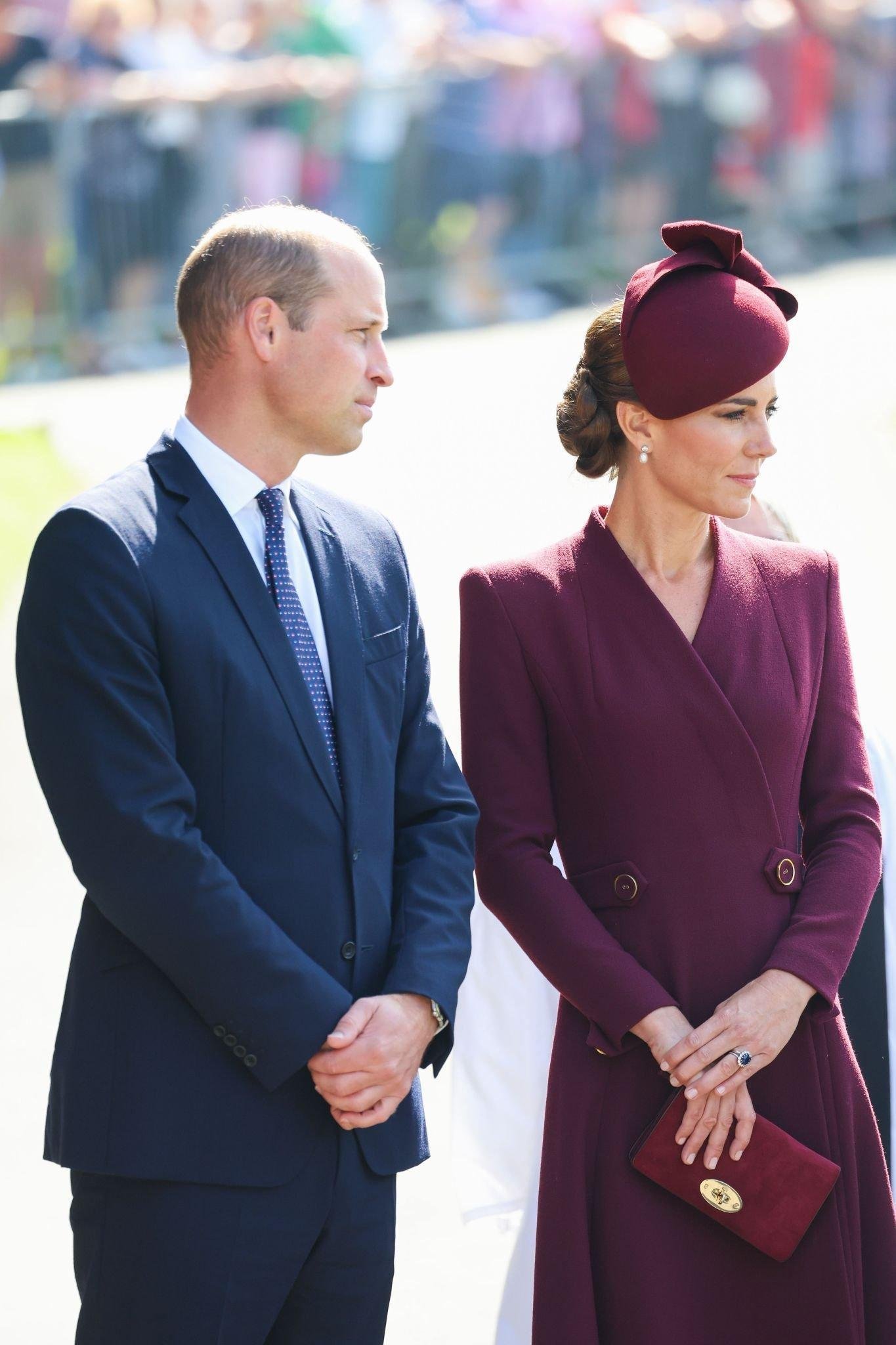 Принцът и принцесата на Уелс пристигнаха в катедралата Сейнт Дейвид в Уелс за служба за отбелязване на първата годишнина от смъртта кралица Елизабет.