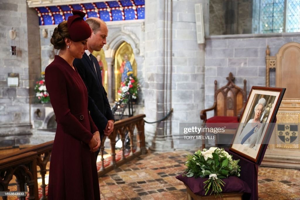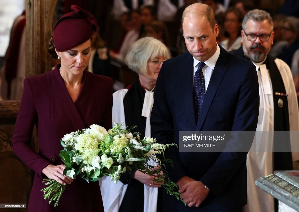 Кейт и Уилям поднесоха бели цветя пред портрета на Елизабет.