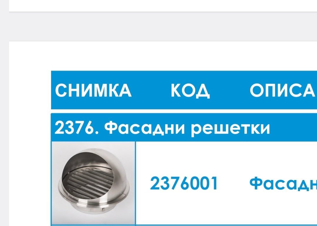 Ето два вида фасадни решетки ,които могат да бъдат боядисани прахово по желание на клиента .Зад решетката ,която се вижда има ситна мрежа .Решетката се вади от тръбата и се мие ,защото се задръства с прах ,мръсотия .