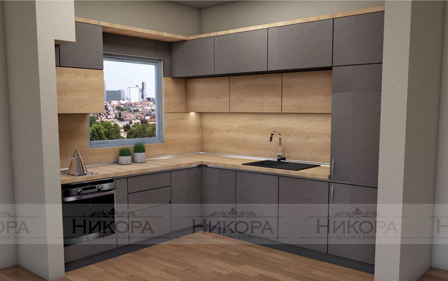 Ще слагам горе 2 реда с кухненски шкафове, както правят напоследък (горните по-дълбоки от долните), като долният ред ще е с бял цвят. Горният ред + долните шкафове ще са в друг цвят.