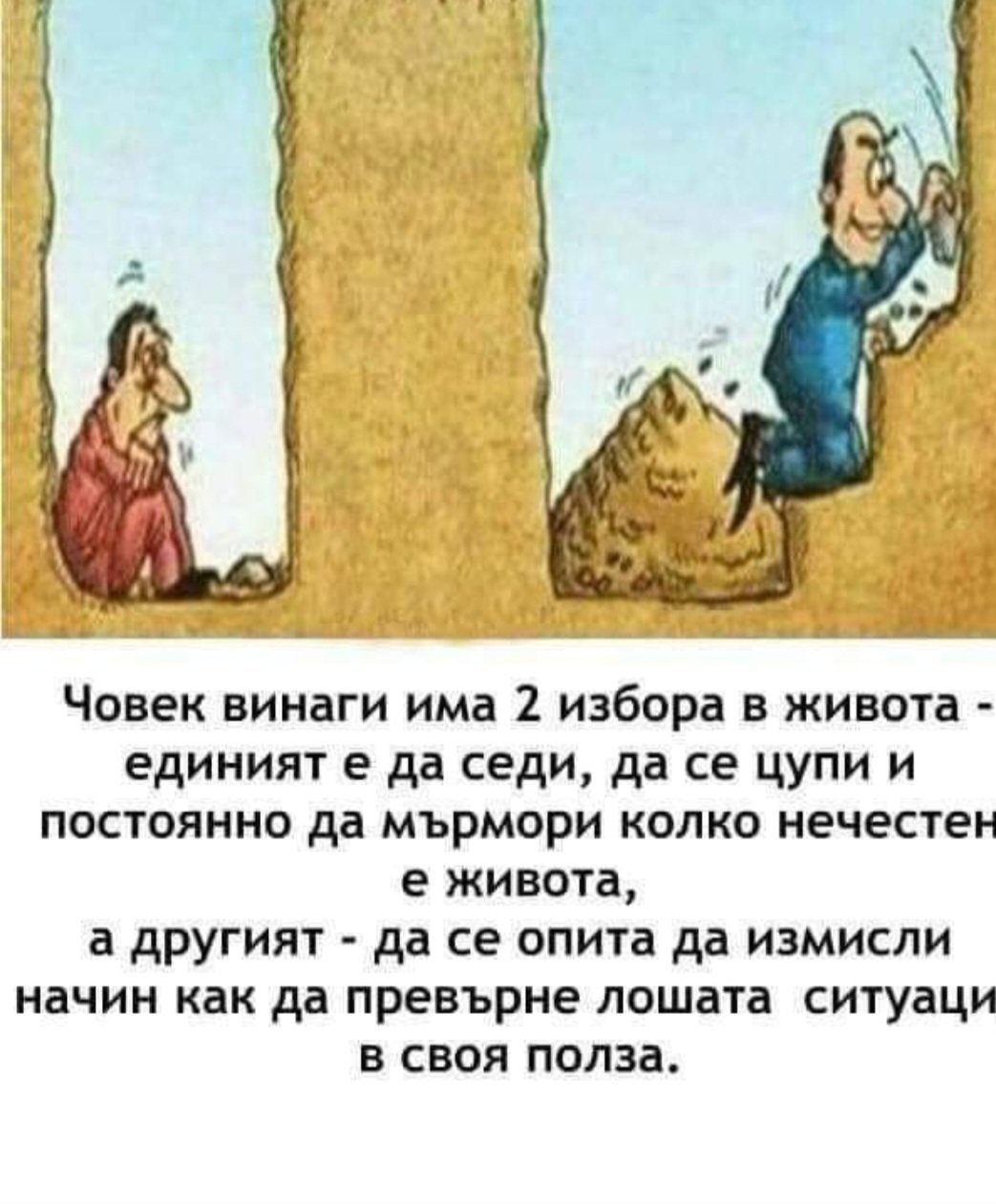 А не те е страх, че докато хленчиш у вас живота ти ще си отмине ей така, без да си разбрала че си жив човек? Не те е страх, че остаряваш и след някоя и друга година ще ти е късно за много неща? Не те ли е страх, че ще останеш без мъж, без деца, без собствен дом? Не те е страх, че един ден ще си сама и безпомощна и няма да има и един прител да ти донесе филия хляб...