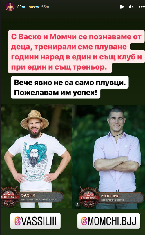 И се познава с братя Василеви (Момчил и Васил). Като деца дълги години са тренирали заедно плуване в един клуб и при един треньор.