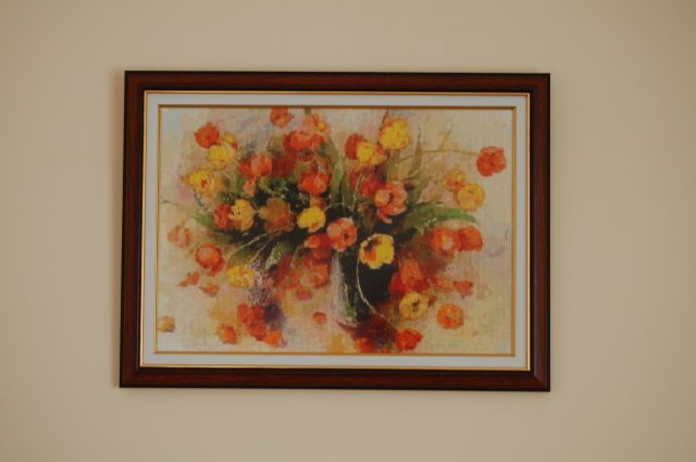 и по-дълъго е било, ту ме прихваща, ту ми писва, а сега не съм достатъчно спокойна за такива занимания, Проф знаеш че преди и работата ми беше много спокойна и кога ходех, кога не....супер си бях... 🤪 Но ме подсети и минах да хвърля един поглед в архивите ми, но не открих хубави снимки, все едно съм снимала с тостера, няколко по качествени имаше, но са доста голям размер като МБ, а не знам как да ги направя като за форума... Последния гоблен беше по картина на Айвазовски, голяма гимнастика си направих, пращах скрийна на картината да ми направят по поръчка схема на цена 300 долара, отделно конци на към 500-600, но една дама която ми следеше етапите успя да ме откаже - как съм щяла да окача такава трагедия на стената в дома ми, а и съдбата си каза думата, няма връзка но се стреснах и просто ми се отщя да продължа. Синът ми тогава на 13 беше в Германия, 3 дни не успях да се свържа с тях, бях изнервена, а изнервен човек не може да шие и да следи внимателно схемите, товва са 130 листа, една книга дето се вика... И така задрасквам по схемите в притеснението си съм си нацапала дланта с гел химикал, изтекъл някак и после се отпечата на светлото небе 🙄 Започнах разшиване, но само думата е кратка, процеса е ужасно труден и бавен, по-сложно от самото шиене и го зарязах. А моите се оказаха със съвсем прозаична причина за липса на връзка, но аз голяма паника, бях на косъм да литнем за Германия... Тръгнали за музея на авиацията в Щутгарт и детска работа- синът ми си счупил телефона, изпуснал го на един ескалатор, брат ми си загубил зарядното, колата им се счупила на излизане от някакво градче, следва обаждане на приятел, помощ, разправии цял ден, наели кола и продъжили така, кой без телефон, кой без зарядно и все едно без телефон, само с този работещия на племенницата ми, а и брат ми не е от тези които смятат че някой може да се тревожи до полуда ... А племенницата що не вдигаше така и не разбрах, но аз щях да откача 3 дни че и после седмица не можех да се успокоя  и накратко  от моите нерви го отнесе картината. Някак думите на потребителката и станалото малко след това с мастилото ги счетах за знак че така и така това не го искам повече вкъщи и така си остана докъдето е на снимката, но на нея все още не е изцапан...