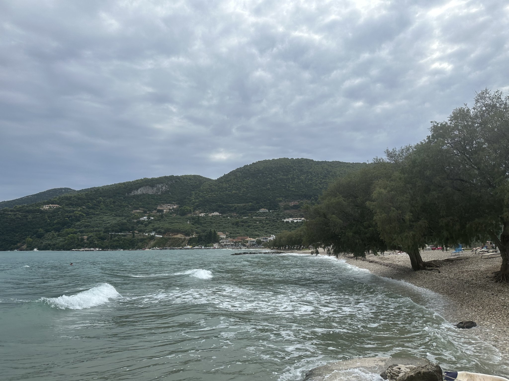 Ние преди малко пристигнахме на Закинтос. Облачно е от време навреме изгрява слънчице. Дойдохме на нашия плаж да поиграе детето , за мен водата е студена , но има хора, които се къпят. Точно на плажа ни е студиото, първите ми впечатления са отлични. След малко ще търсим таверна наблизо да хапнем.