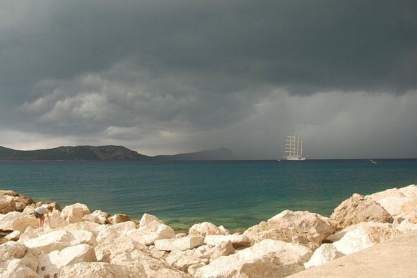 ) и отскочихме до Палеохора за плаж с надеждата, че там времето ще бъде по-добро. Беше... и слънчево, и морето като тепсия, но духаше толкова ужасен вятър, че не издържахме повече от два часа и се прибрахме.