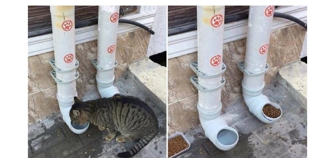 Това с тръбите е готино, но аз само за няколко часа докато съм там, само комшийските котки без моите изяждат 3 консерви, дробчета и воденички един пакет  и  им оставям 400 грама или повече суха храна. Ако е за седмица не виждам как ще оставя достатъчно за всички , а освен това ще събера котките от цялото село при мен за постоянно.