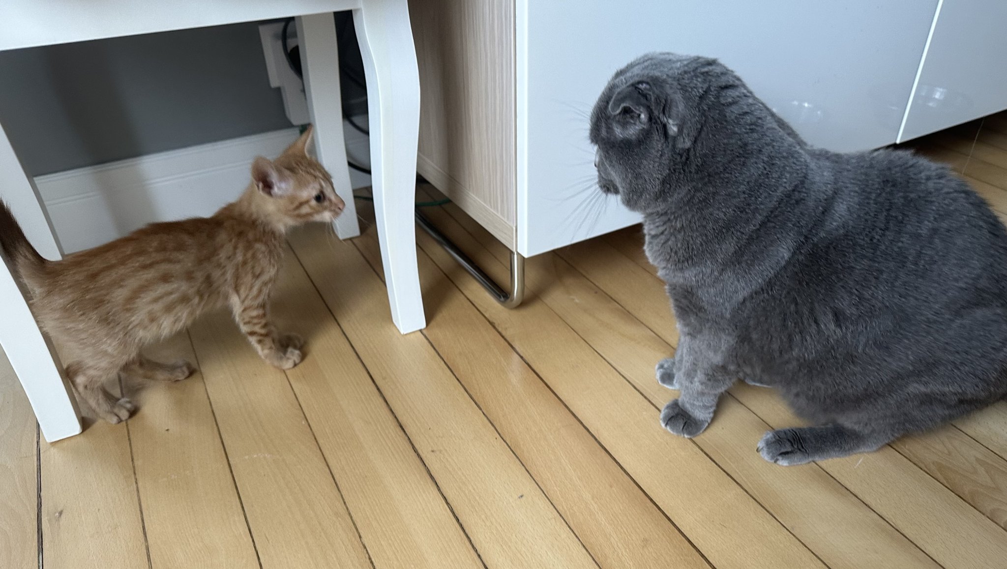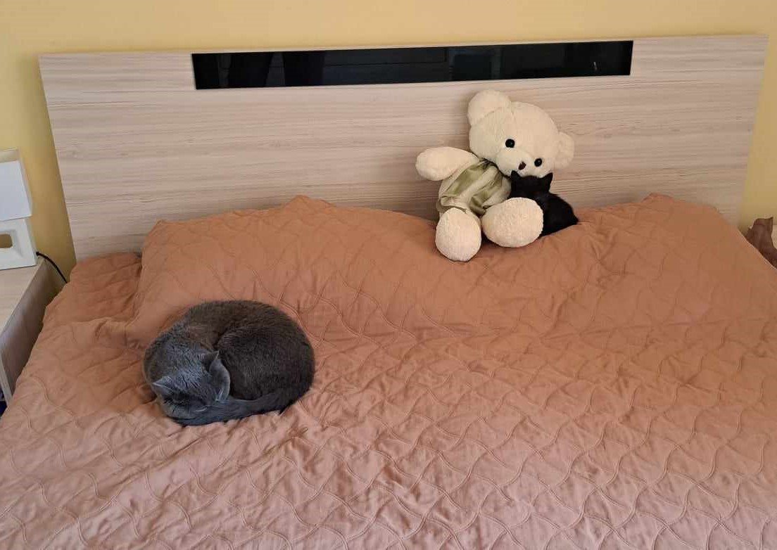 Здравейте, при нас има малък напредък, вече не ги делим през деня, но каката е малко изнервена ...Това малкото се опитва да си играе с нея и я напада постоянно (освен, когато не спи) ...Елизабет продължава да и хъска, но се заиграват на моменти, малко агресивно, но все пак не замахва със сила .