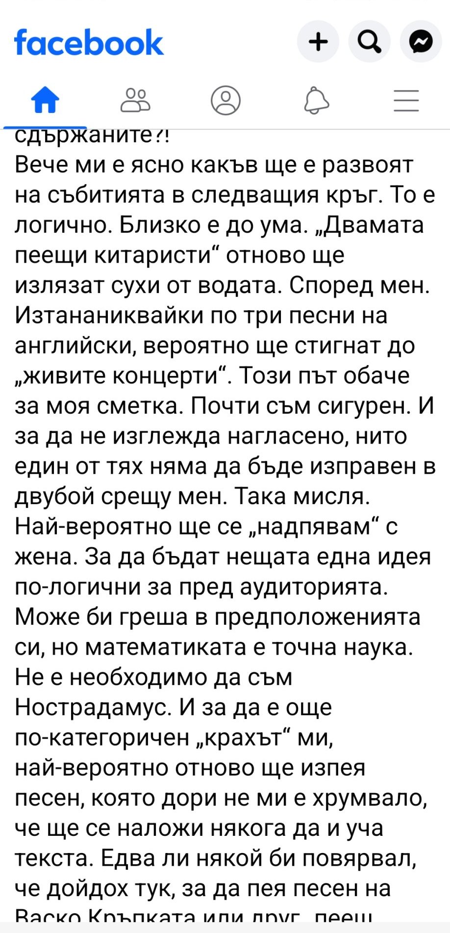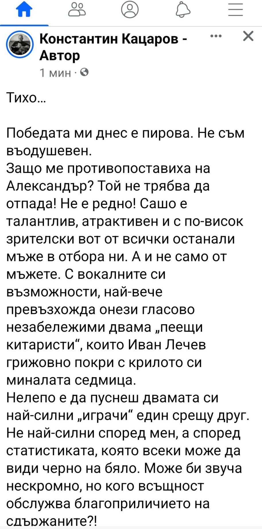 Така, така... Лечев затвърждава мнението ми, че двамата с Миро хич ги няма в избора на песни. Успешно си закопават певците 😁