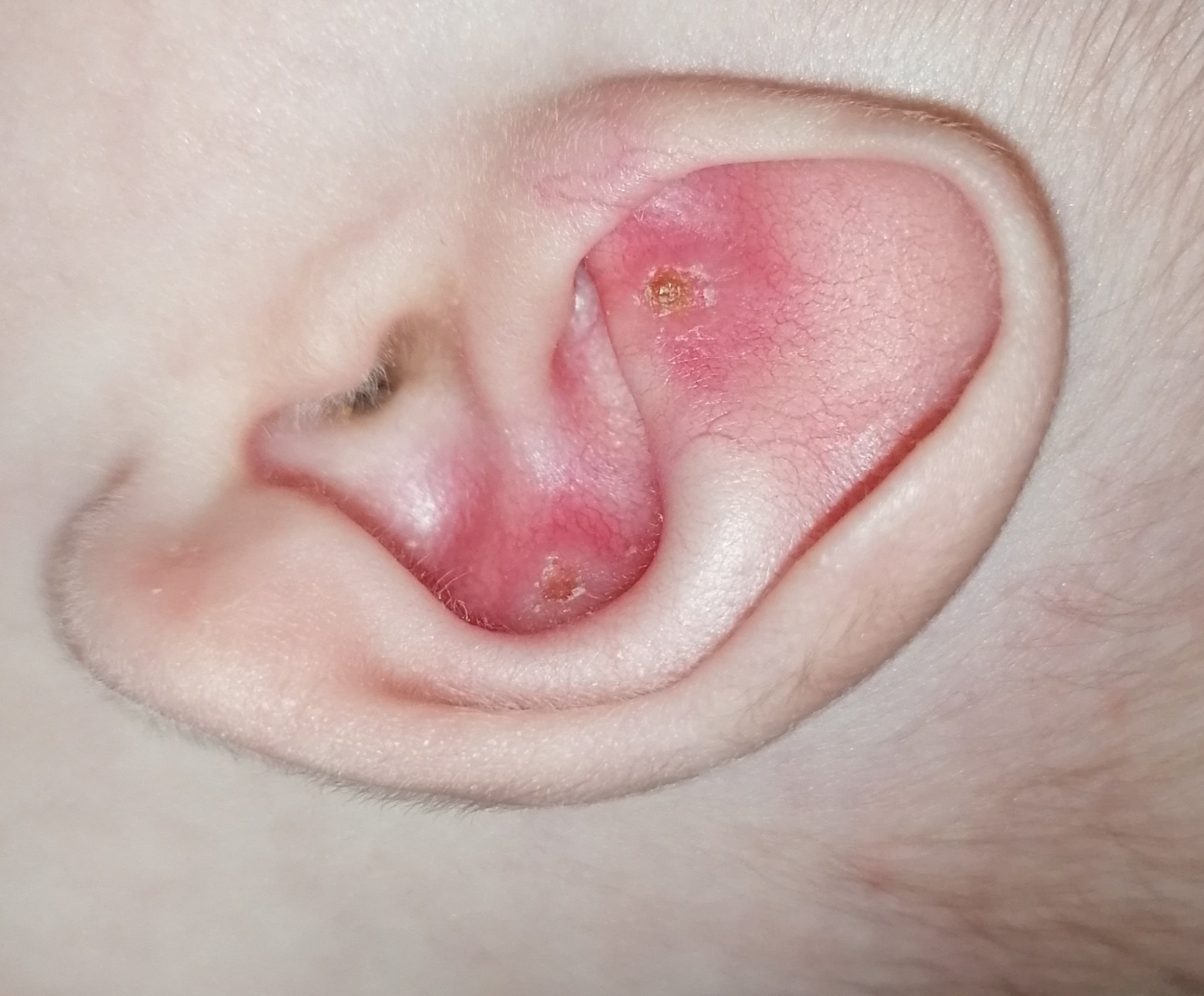 На ухото на бебето ми се появиха тези две ранички. Имате ли представа какво може да е и дали да търся педиатър?