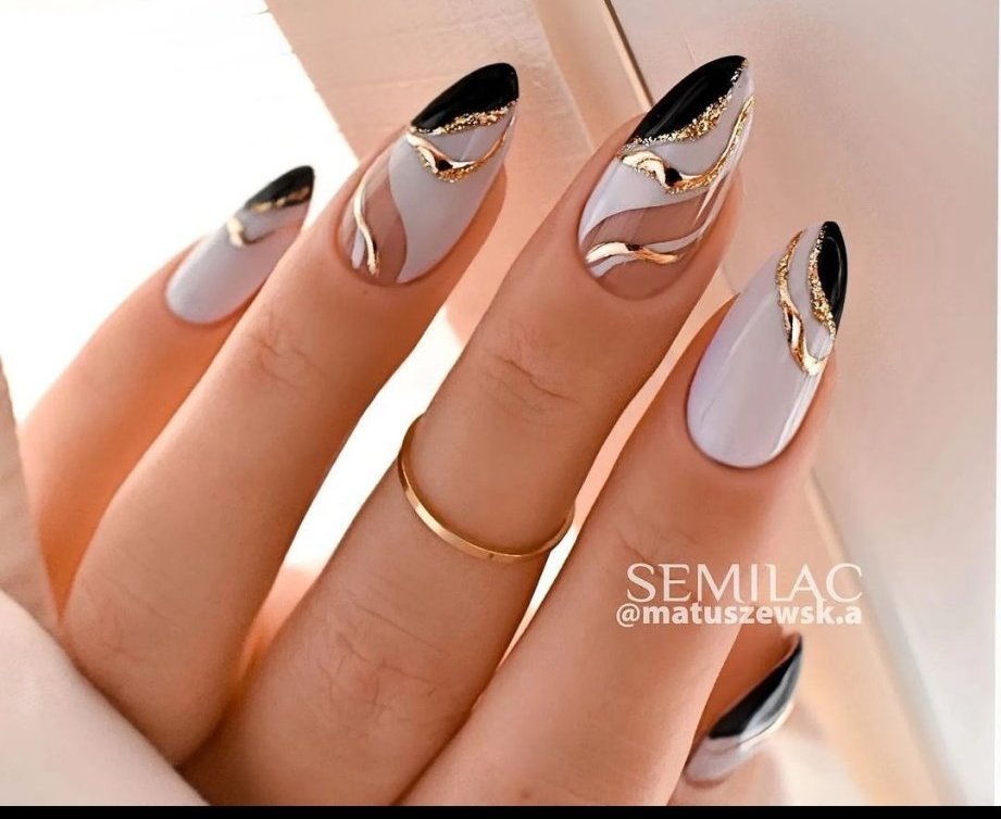 Аз пък напоследък гледам едни маникюри с вълнообразни линии в сребърно или златно, но не е като нарисувано, а релефно като течен метал/живак... Не знам дали обяснявам правилно. Може би не е най-точния пример, но нещо такова, знаете ли с какви материали/техника се постига