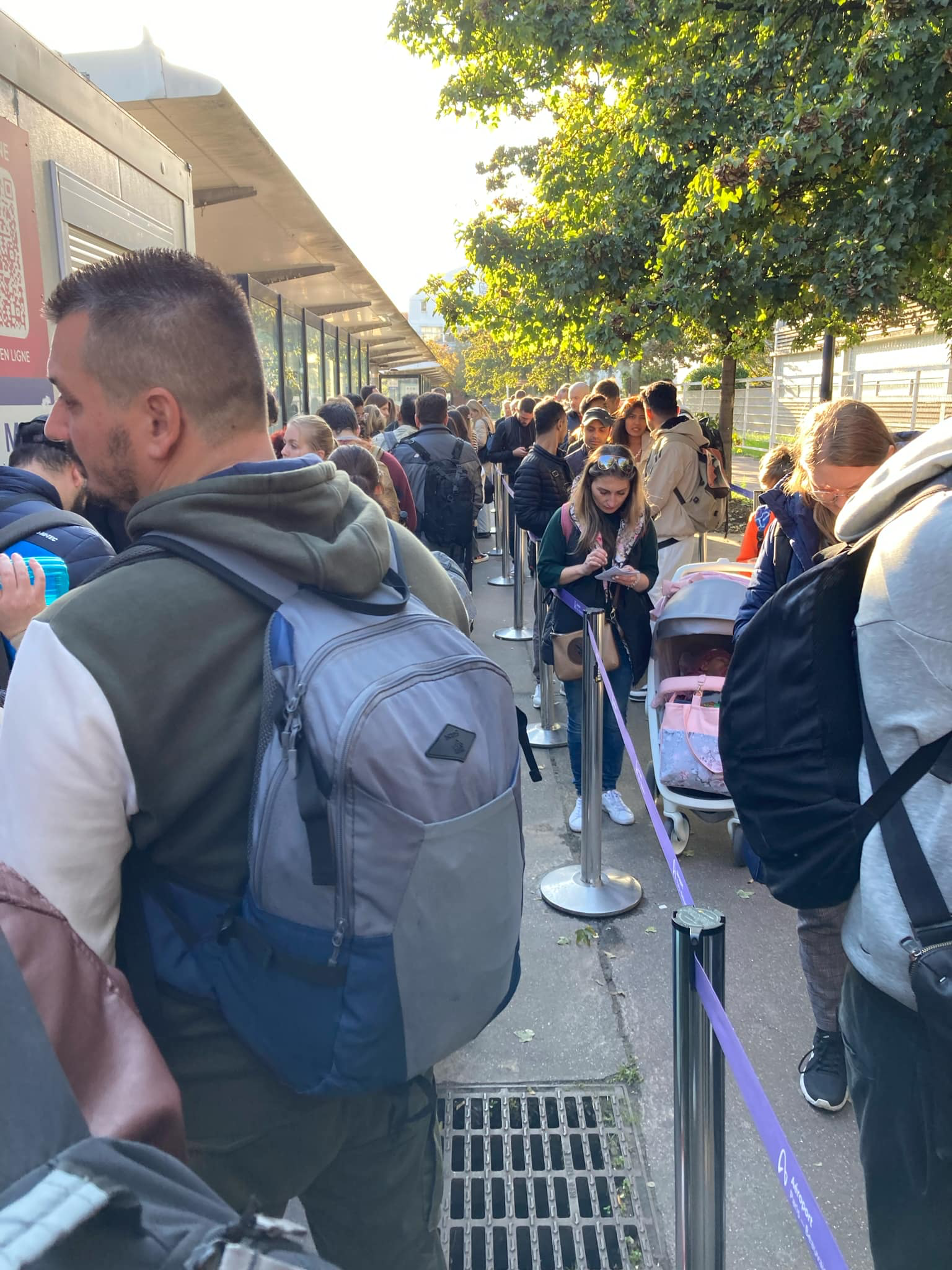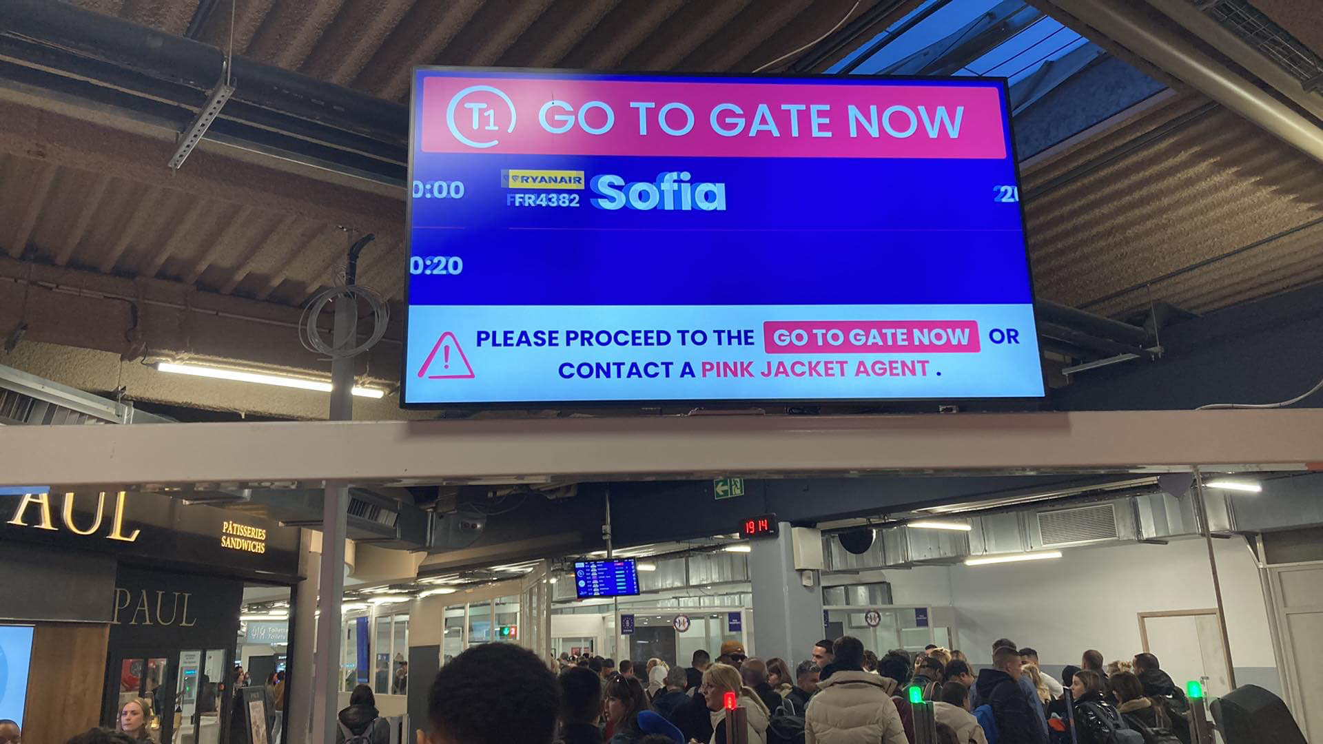 И за да довърша разказа с трансфера Париж-Бове, пристигнах в 19.00 (за полет 20.40 без чекиране багаж е екстра), но.. изобщо не съм знаел от кой терминал. Виждам таблото, виждам си полета и се нареждам. След 10 мин. дойдох до сканиране на бордната карта, пише ми Wrong Terminal и там от служителите ми казаха да бягам на Т1, че това било Т2. И там виждам някаква умопомрачителна опашка.