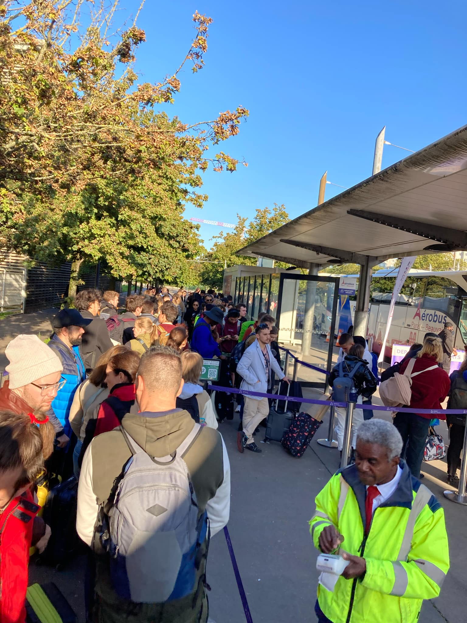 На връщане.. километрична опашка със завои (змейка) на Сен Дени. В 17.15 ч (чак се притесних за полета си в 20.40), опашката беше поета от поне 3-4 автобуса, които.. слава Богу бяха един след друг през 5 мин, а не през 15 мин., както е по разписания. Явно вечер има струпване на полети в петък и си знаят знаят от Аеробус.