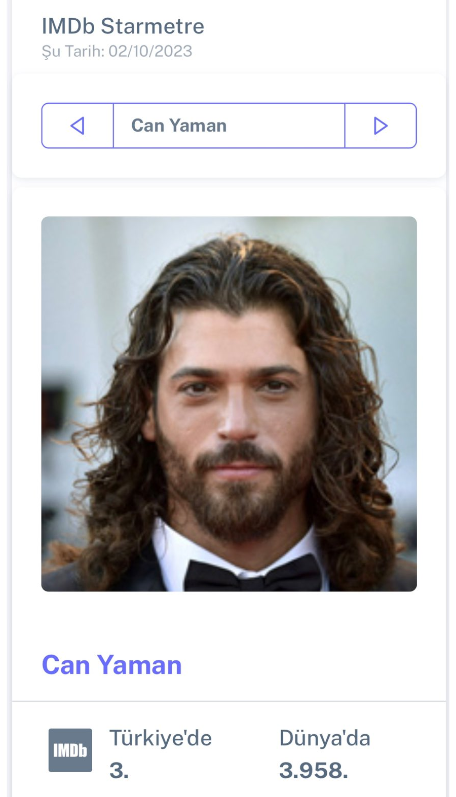 Can Yaman е номер 3 🥉сред всички турски актьори и актриси в седмичната класация на IMDb,