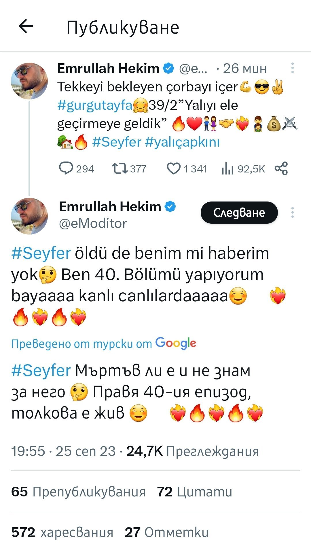 В туитър също пишат, че щом Емрулах хвали от сега 40 серия, значи 39-та със сигурност нищо нямало да струва. 😂😂🤣
