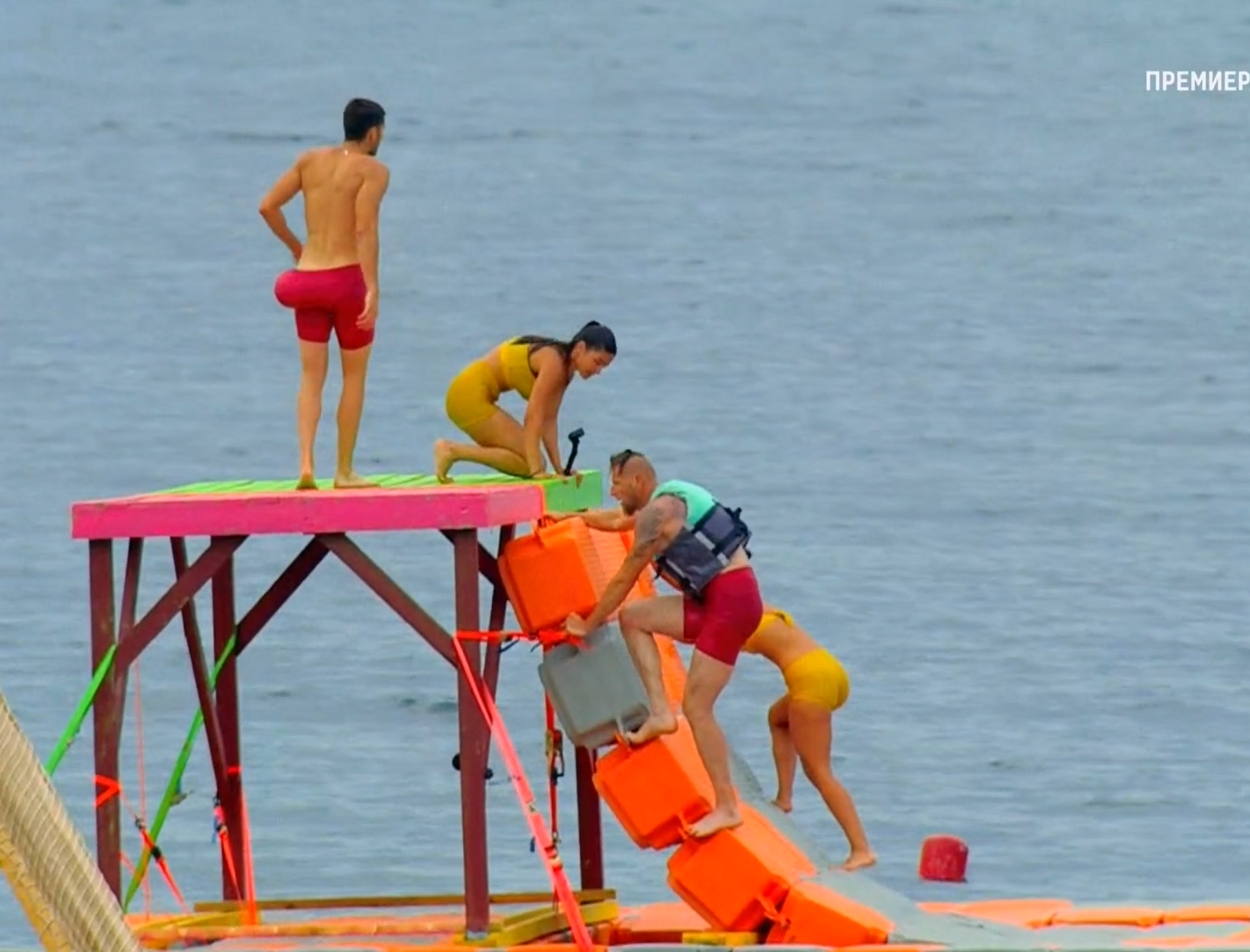 Встрани от нея, дори и Рълев трудно се качва на коварната платформа.